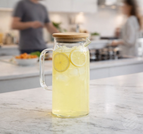 Jarra de vidrio 1700ml para bebidas con tapa de bambú y sello Ref 14528
