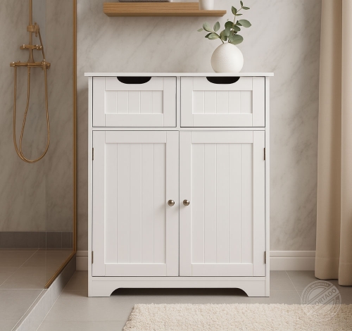 Mueble organizador blanco con puertas de vidrio texturizado Ref 14880