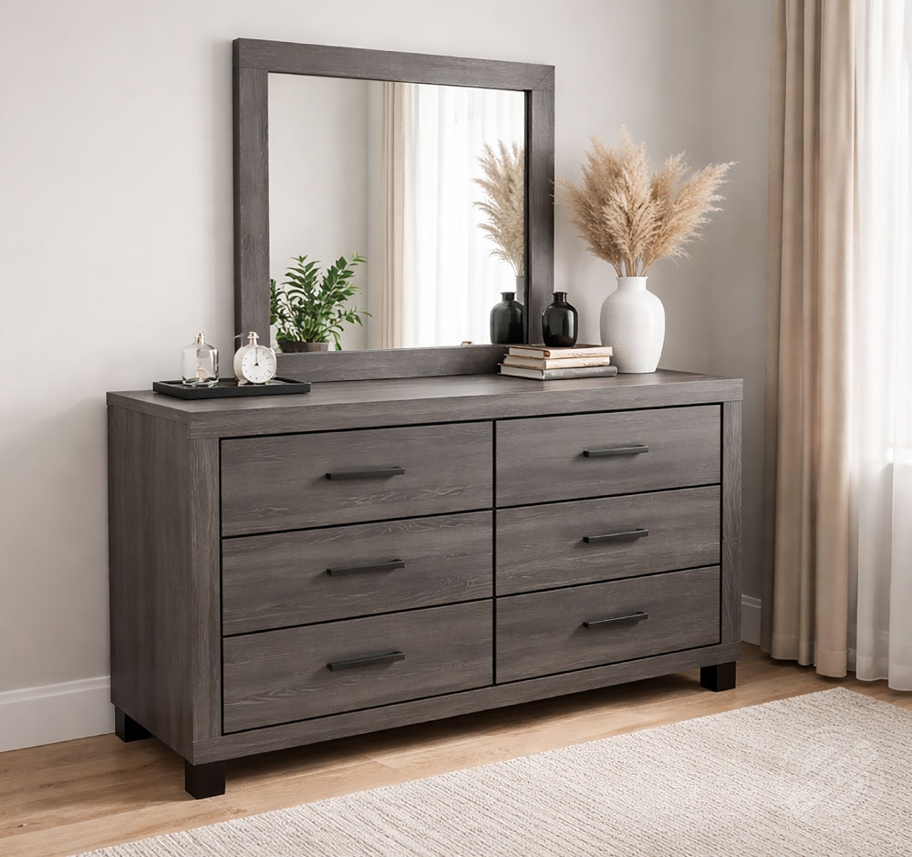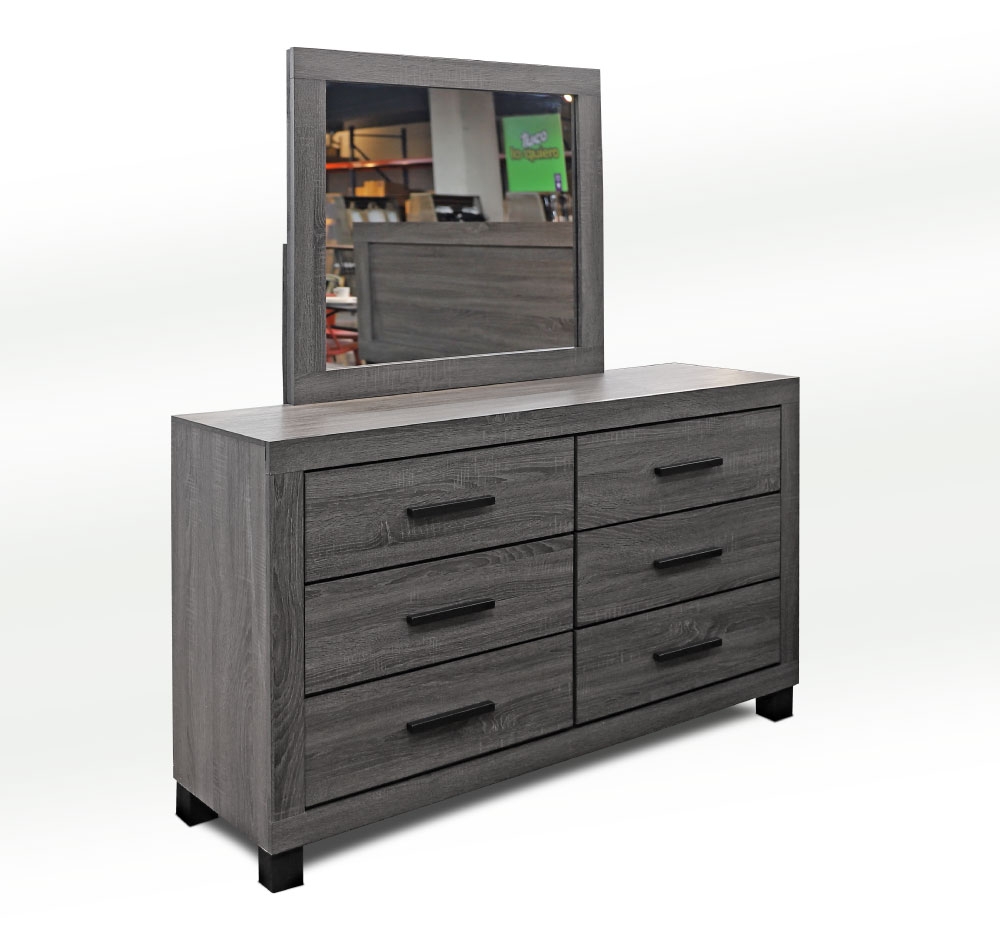 TUCO Dormitorio Cómoda con espejo moderna gris con 6 gavetas para dormitorio Ref 10290