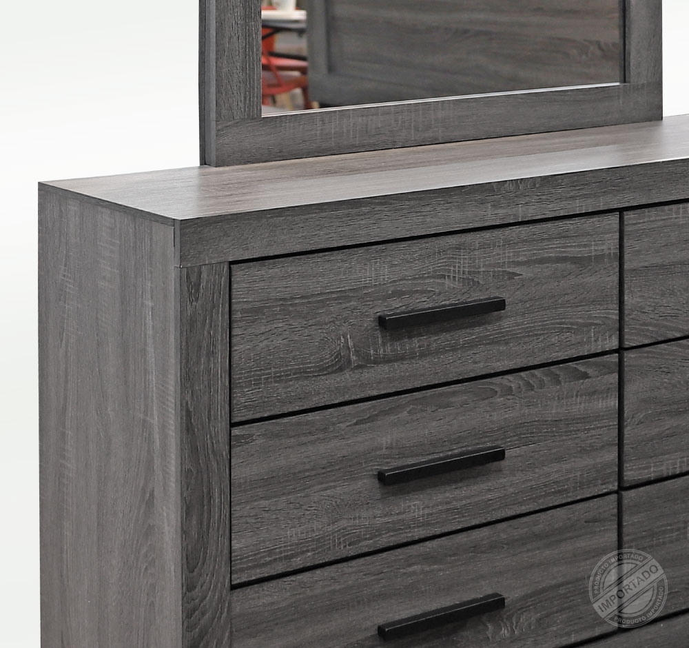 Cómoda con espejo y 6 gavetas para dormitorio Liam gris Ref 10847