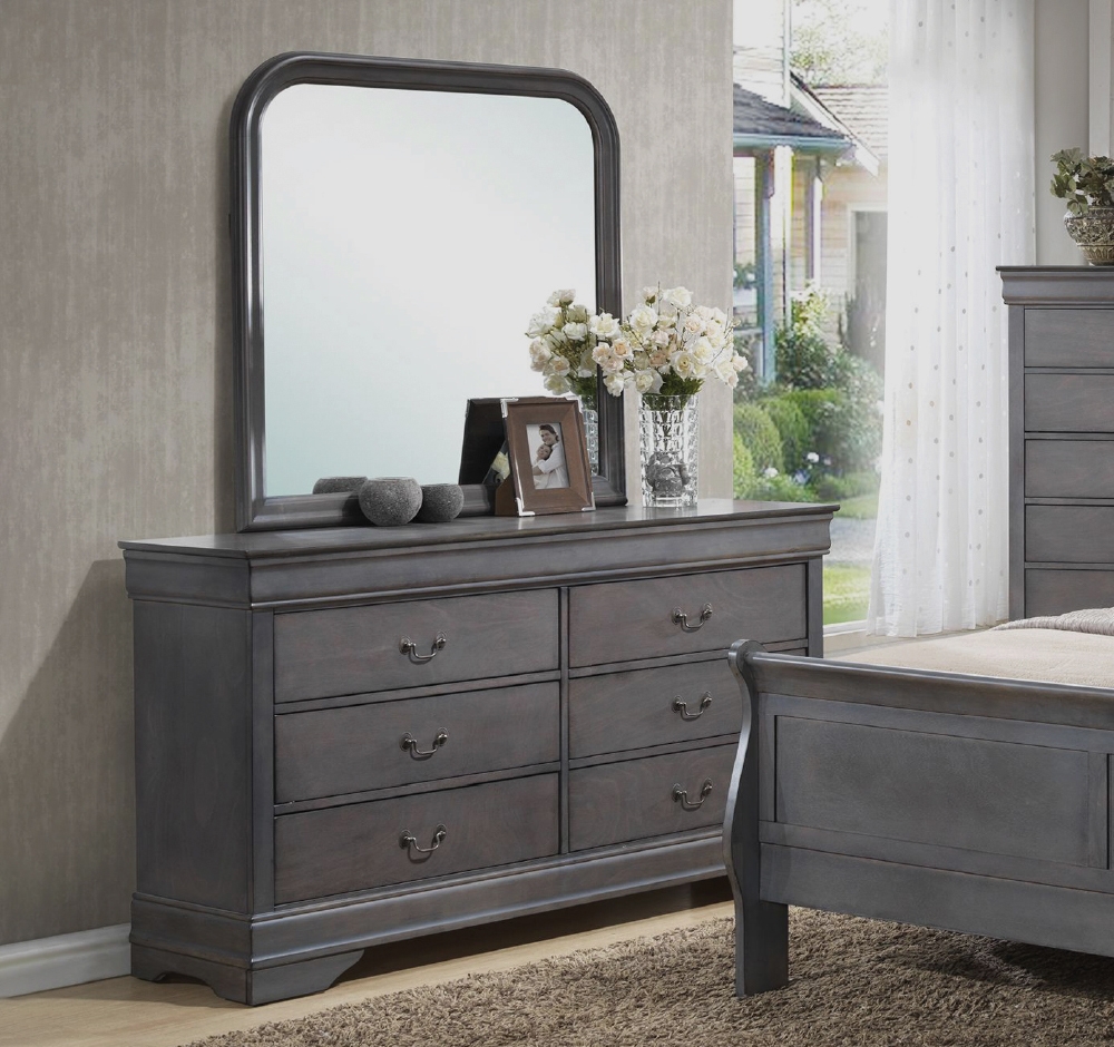TUCO Dormitorio Cómoda con espejo y 6 gavetas para dormitorio Liam gris Ref 10847