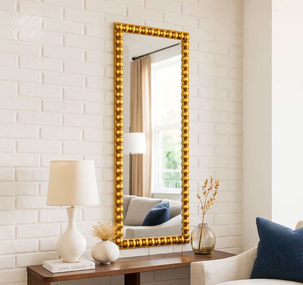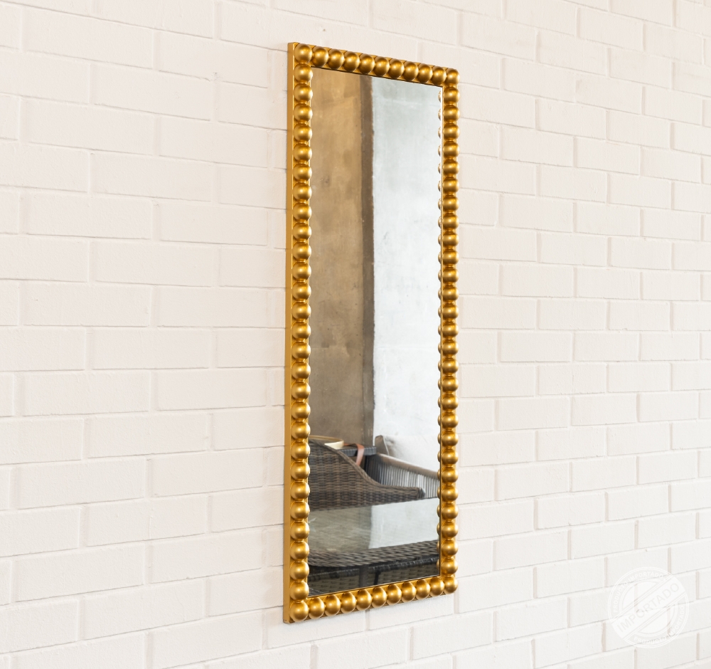 Espejo dorado alargado 46 x 127cm marco de esferas Ref 14865