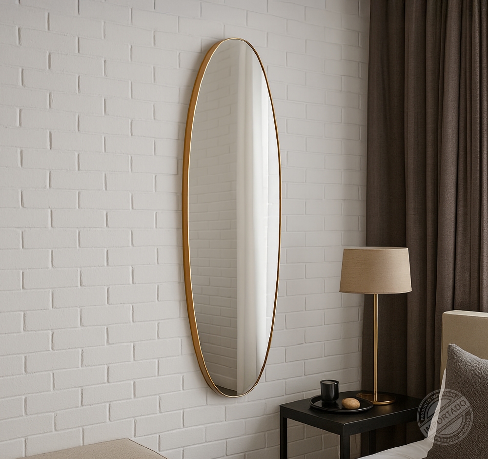 TUCO Dormitorio Espejo dorado 45 x 120cm marco ovalado moderno Ref 14868