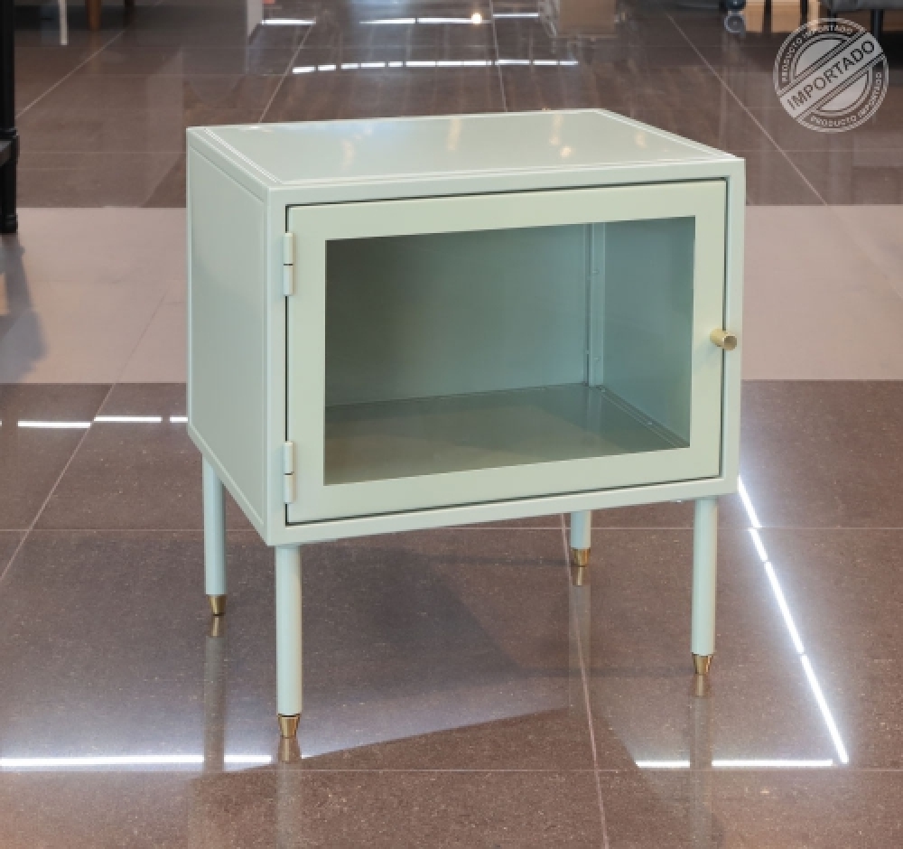 TUCO Dormitorio Mesa complemento metálica menta con puerta de vidrio y patas doradas Ref 10565