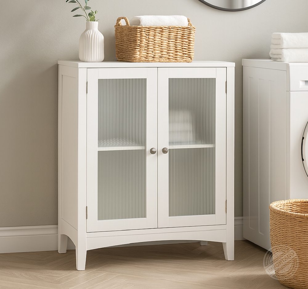 TUCO Almacenaje Mueble organizador blanco con puertas de vidrio texturizado Ref 14880