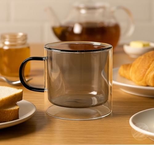 Taza de vidrio doble fondo 8 onzas color smoke Ref 14634