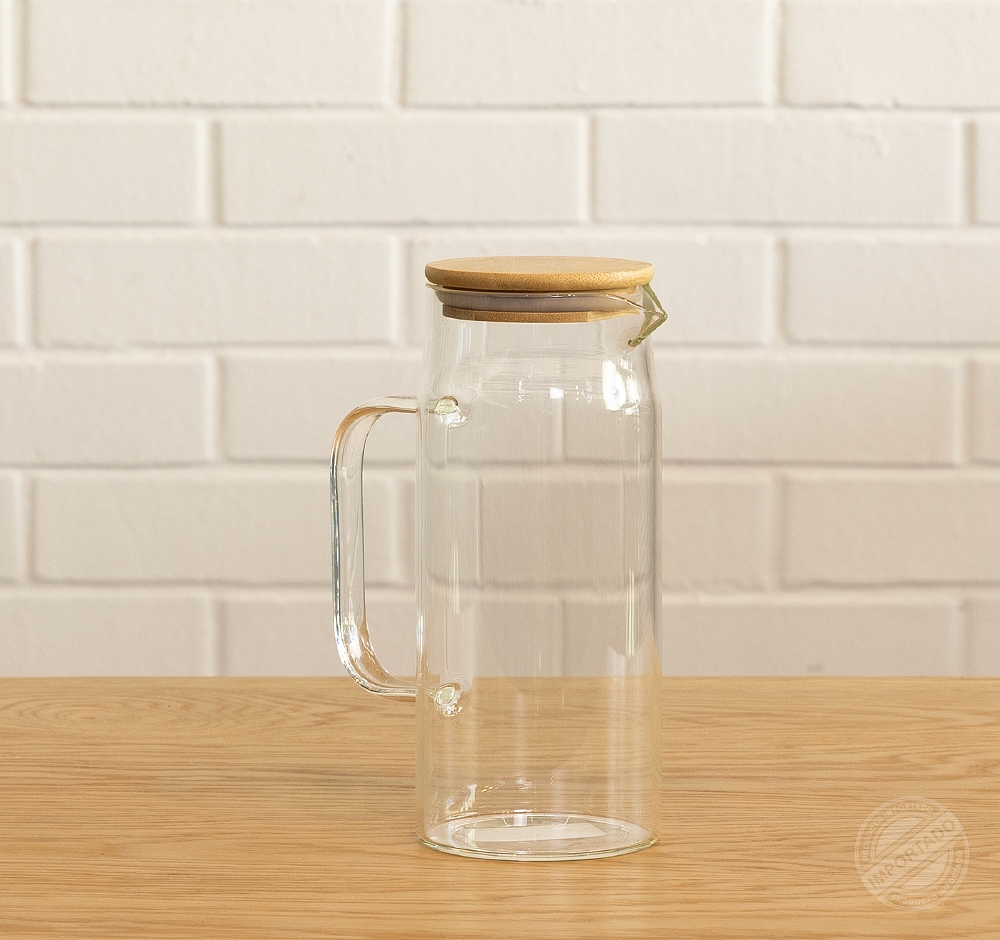 TUCO Comedor Jarra de vidrio 1200ml para bebidas con tapa de bambú y sello Ref 14526