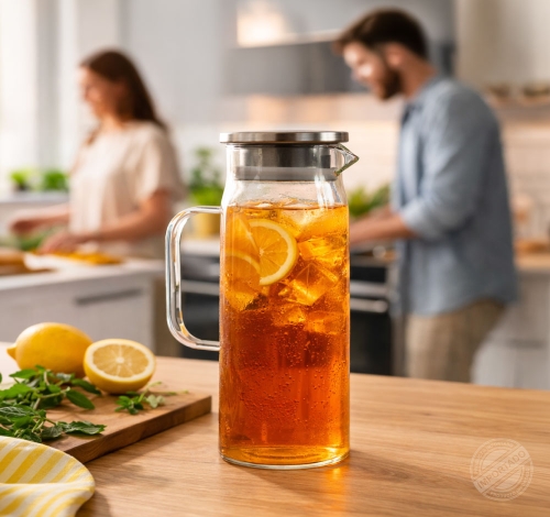 Jarra de vidrio 1200ml para bebidas tapa de acero inoxidable Ref 14523