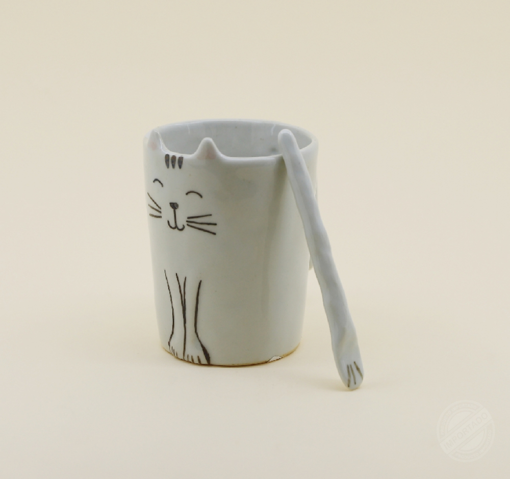 TUCO Comedor Taza gato gris con cucharilla Ref 10772