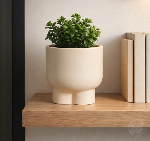 Macetero mediano moderno con base elevada para plantas color beige Ref 15248
