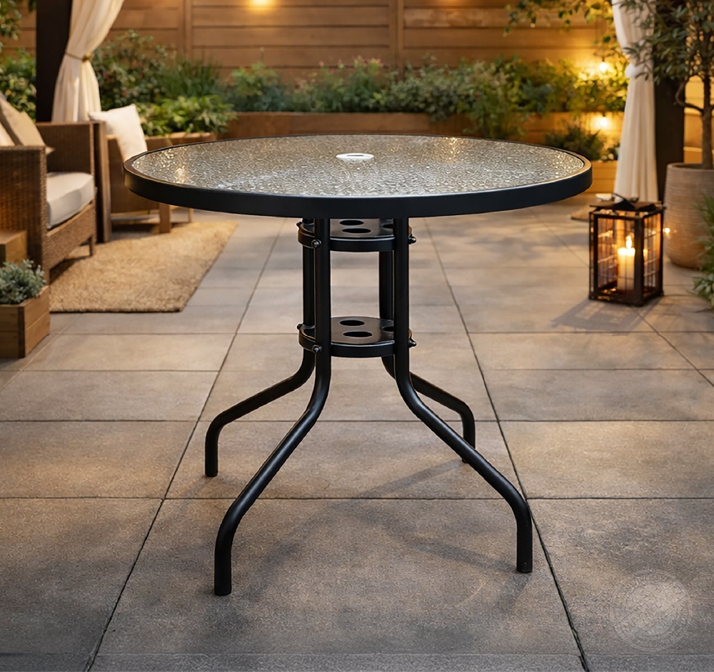 TUCO Exterior Mesa redonda para exterior con vidrio templado de 80 cm Ref 8269