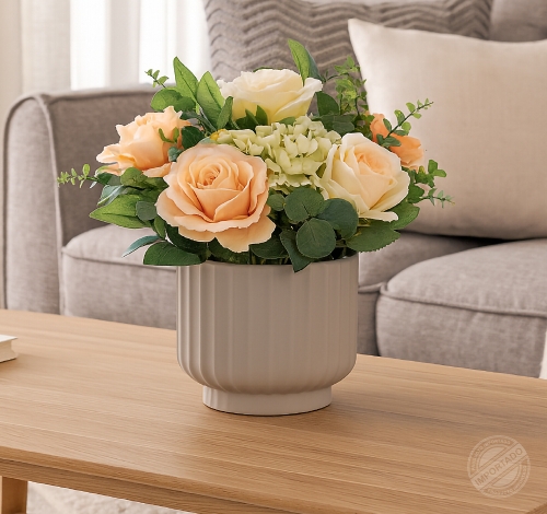 Florero cerámico decorativo grande con diseño moderno beige Ref 14757