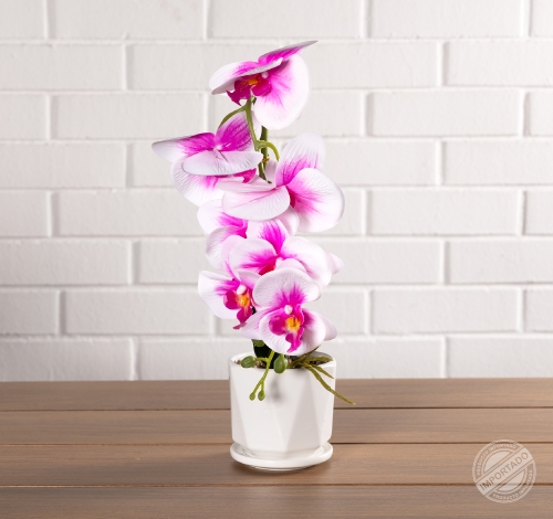 Orquídea artificial decorativa con maceta facetada Ref 15216