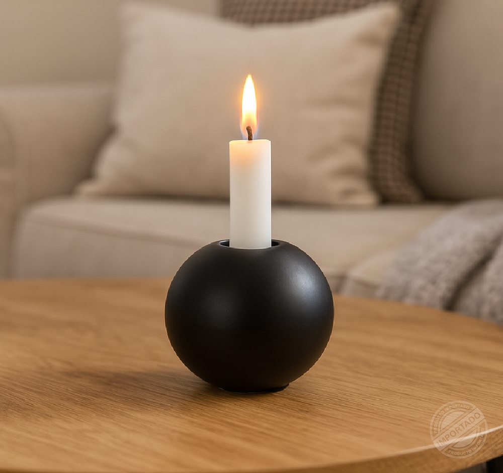 TUCO Chunches Candelero cerámico negro redondo con patitas Ref 14726