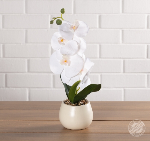 Orquídea artificial decorativa blanca con maceta redonda Ref 15205