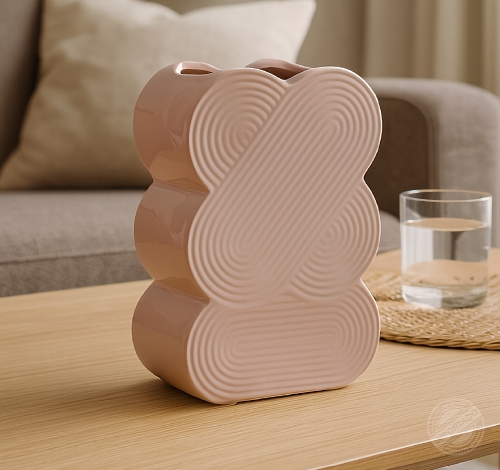Florero cerámico decorativo con textura de líneas diseño moderno rosa Ref 14766