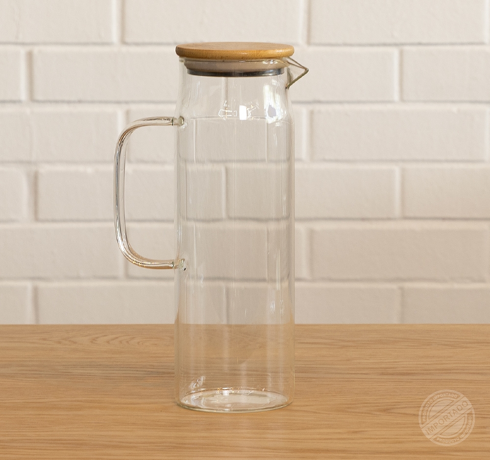 Jarra de vidrio 1200ml para bebidas con tapa de bambú y sello Ref 14526