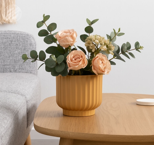 Macetero cerámico decorativo diseño moderno mostaza Ref 14756