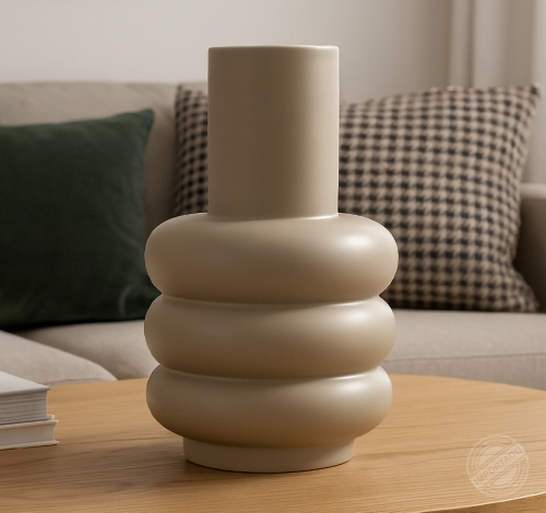 Florero cerámico decorativo con curvas diseño moderno beige Ref 14765