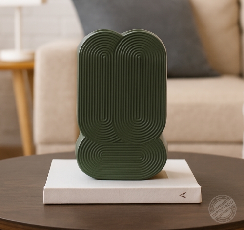 Florero cerámico decorativo con textura de líneas diseño moderno verde Ref 14767