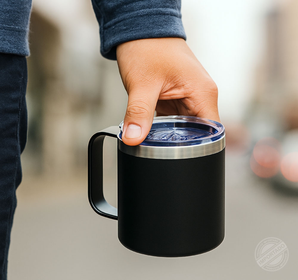 TUCO Chunches Taza térmica negra con agarrador 350 ml Ref 15044