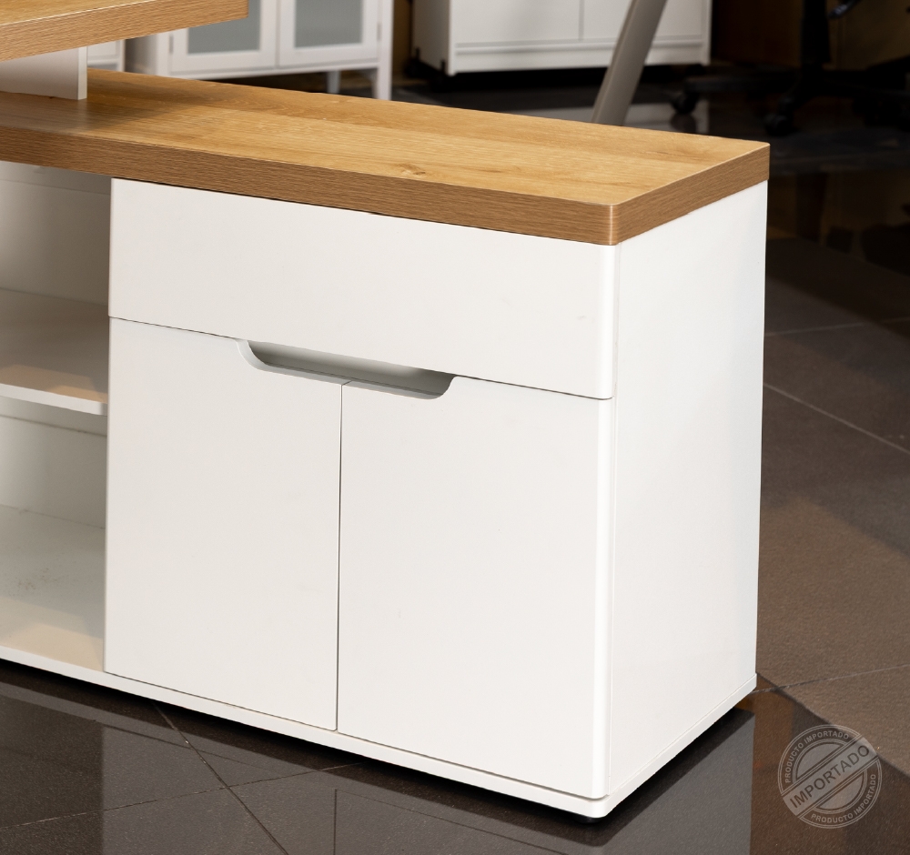 TUCO Oficina Escritorio moderno en L blanco con módulo de almacenamiento y repisas Ref 15411