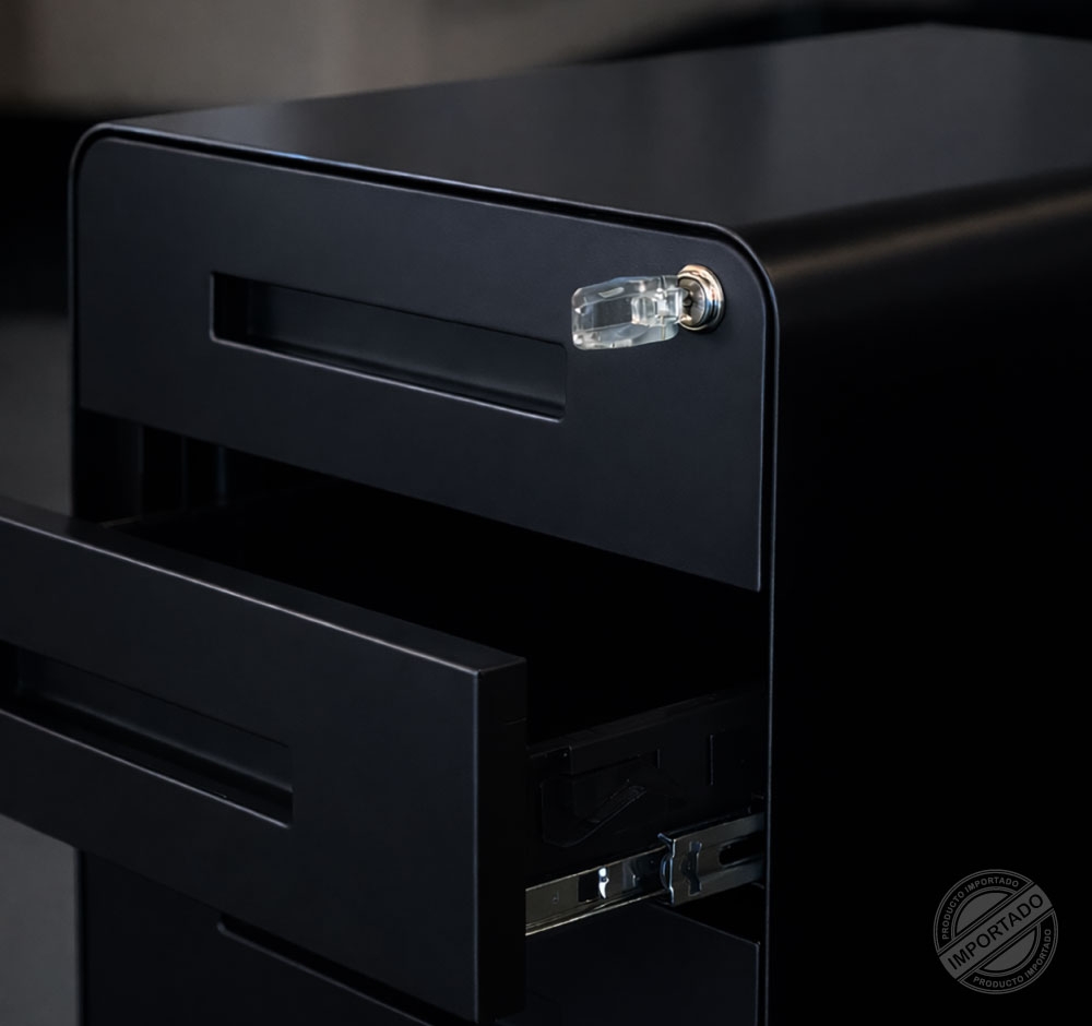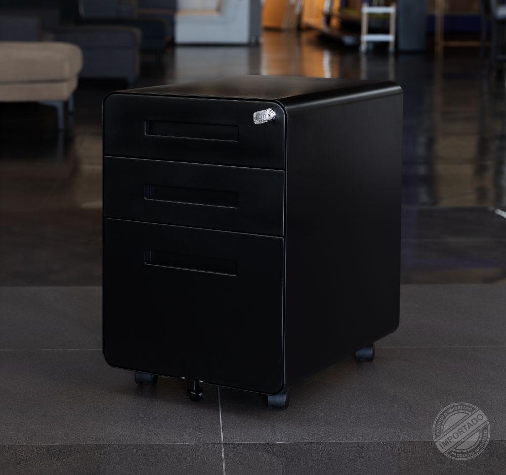 TUCO Oficina Robot de oficina metálico negro con 3 gavetas y cerradura Ref 15273