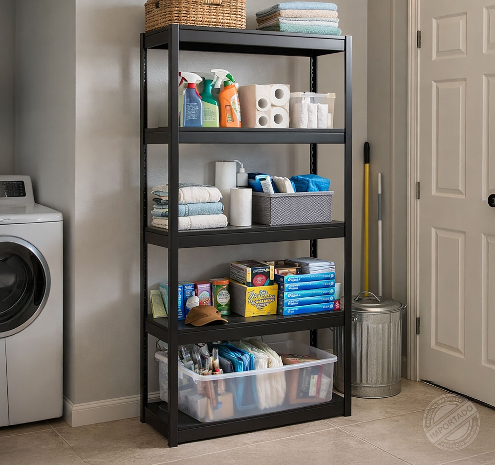 TUCO Oficina Estantería metálica resistente de 4 niveles en color negro Ref 15275