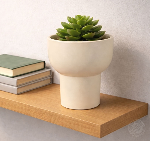 Macetero moderno mediano con base elevada para plantas color beige Ref 15231